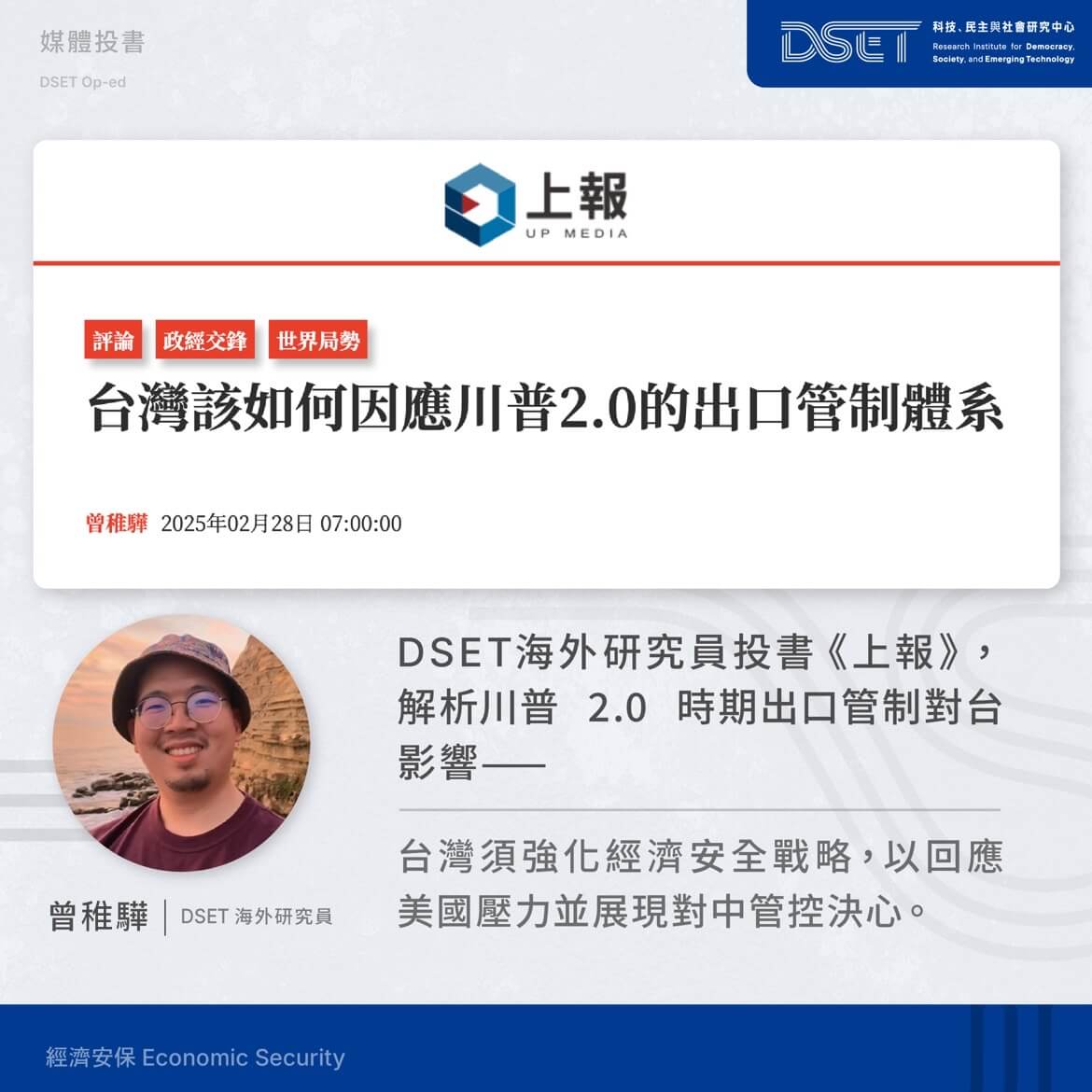 DSET 海外研究員投書《上報》,解析川普 2.0 時期出口管制對台影響